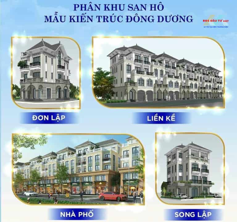 – Loại hình sản phẩm: Biệt thự, Liền kề, Shophouse và chung cư